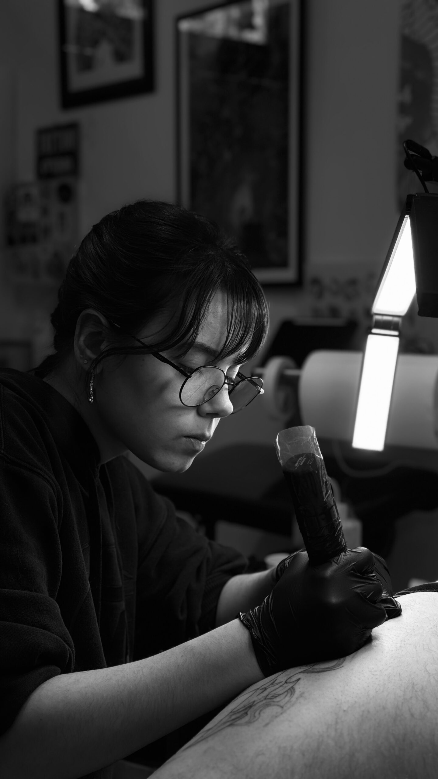 Tattoo machine alla mano dal gennaio 2023, dopo un apprendistato tradizionale da Adrenalink Tattooing con Crez come maestro; oggi mi occupo di adattare e trasferire su pelle i vostri panelli preferiti, creo inoltre progetti personalizzati che raccontano chi siete, attraverso i personaggi che amate.